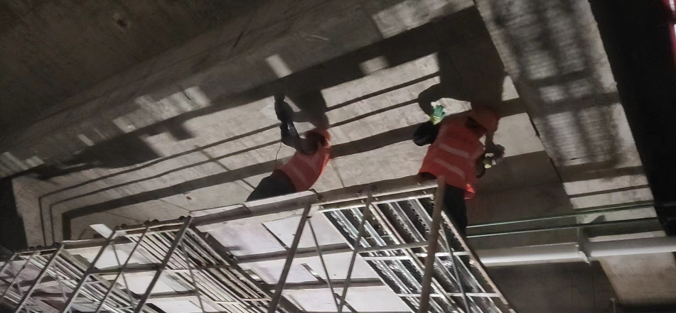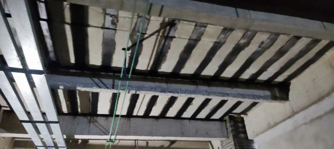 晉寧吾悅廣場(chǎng)四層板面和板底碳布粘貼